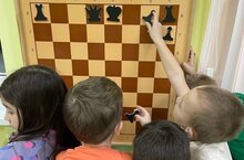 В старшей и подготовительных группах продолжаются дополнительные занятия по шахматам. Проходили тему «ценность фигур»