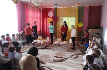 Воспитатель младшей группы Гатина М.В. провела с детьми развлечение. Дети играли в подвижные игры, инсценировали потешки.Воспитатель показала настольный театр "Мама утка и утенок Кряк"