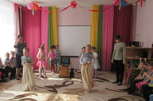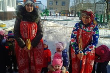В детском саду прошел праздник "Масленица" Персонажи с детьми играли в игры, угощались вкусными блинами.