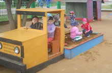 Замечательную машину смастерили своими руками ученики СОШ №3 для детей нашего детского сада. Руководитель этих ребят Мильчаков Л.В. Большое спасибо Вам , от всех наших ребят.