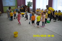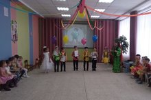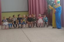 Сегодня в детском саду прошел праздник для детей, родившихся зимой. Ребята младших групп поздравили своих друзей песнями и танцами, а клоун Тяпа поиграл с ними в различные игры ("Собери снежки", "Попади в цель", "Свари компот")