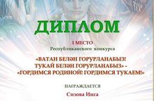 Республиканского конкурса "Ватан белэн горурланабыз! Тукай белэн горурланабыз! Гордимся Родиной! Гордимся Тукаем!" в номинации" Художественное творчество"