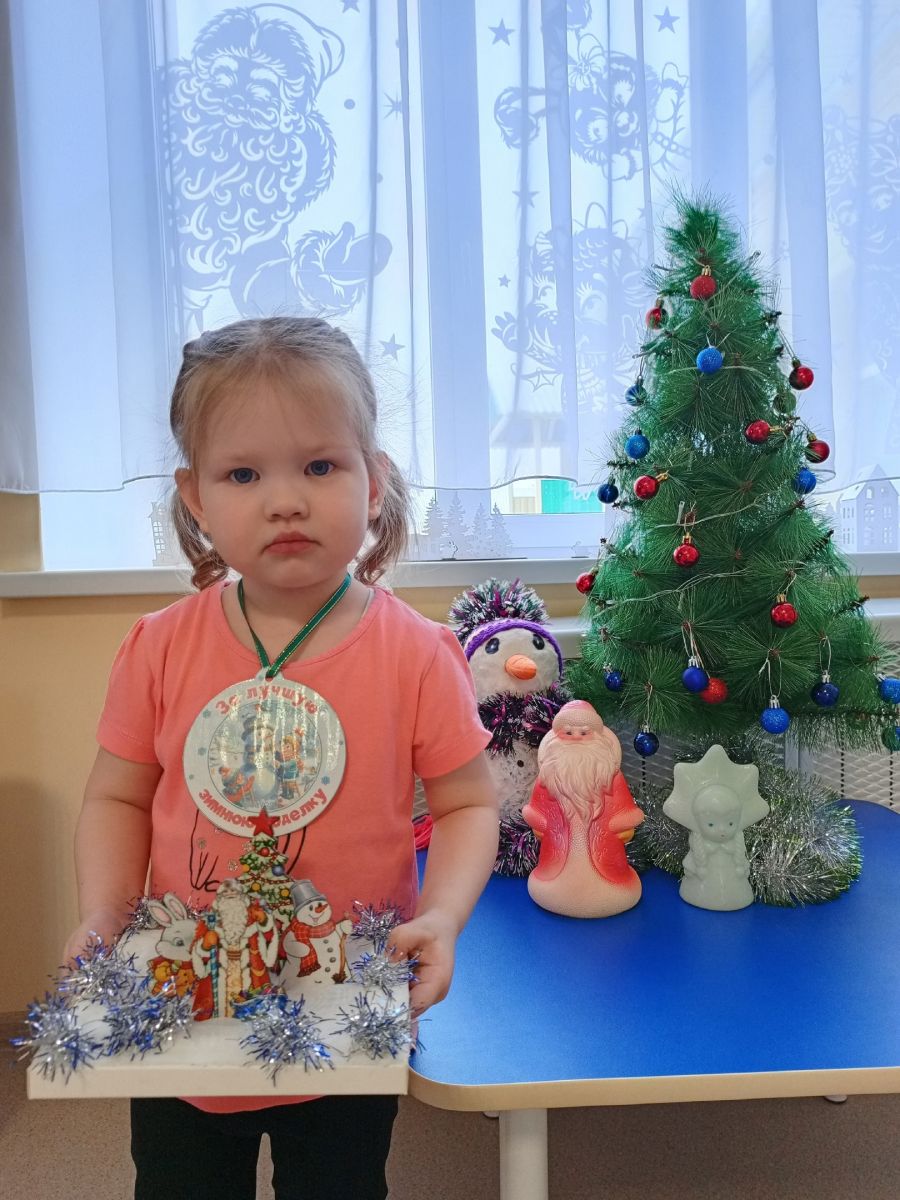 В младшей-средней группе проходила выставка новогодних поделок совместного творчества детей и родителей " Веселый снеговик".