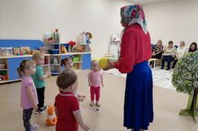 Сегодня на базе МБДОУ №10 "Чишма" прошло первое заседание районного методического объединения воспитателей групп раннего возраста на тему "Театрализованные игры как средство развития речи у детей раннего возраста". В рамках РМО воспитатель Андреева Д.А. провела театарлизованнуюю игру "По дорожкам за Колобком". Дети с удовольствием выполняли прстейшие действия персонажей: прыгали как зайцы, выли как волк, шагали как медведь; послушали песенку колобка и не позволили лисе съесть его.
