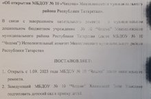 Постановление "Об открытии МБДОУ № 10 "Чишма" 24.08.2023
