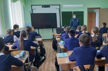 В рамках месячника безопасности, инспектор межрайонного отдела надзорной деятельности и ПР Муртазин И.М. провел интересную и увлекательную беседу с учащимися 3а и 6 классов по правилам соблюдения пожарной безопасности. / Гимназиянең 3а һәм 6 нчы сыйныфлары өчен пожар куркынычсызлыгы буенча файдалы әңгәмә үткәрелде.