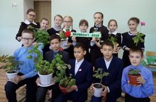 В акции "Эко весна" особенно активно участвуют ученики начальных классов. / "Эко яз" акциясендә катнашу башлангыч сыйныф укучыларына бигрәк тә нык охшый. Алар ггимназия бакчасында үстерү өчен герань гөлләре үстерде.
