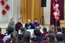 Бүген "Казан егетләре" бездә кунакта! Казанның иң талантлы, иң моңлы егетләре Минзәлә театрында булачак концертлары алдыннан гимназиягә дә кереп чыгарга уйлаганнар. Тормышларында булган кызыклы хәлләрне сөйләп, җырчы кешенең тормыш хәлләре белән таныштырып, үзләрен яраткан тамашачыны сөендергән өчен зур рәхмәт! Малайлар һәм кызлар талантлы егетләр белән очрашуга чын күңелдән шатланды.