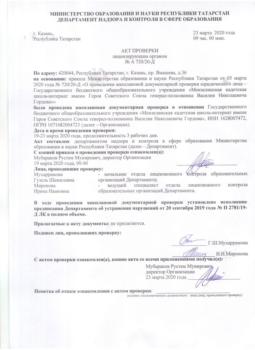 Государственное бюджетное общеобразовательное учреждение "Мензелинская кадетская школа-интернат имени Героя Советского Союза генерал-полковника Василия Николаевича Гордова"/"Советлар Союзы герое генерал-полковник Василий Николай улы Гордов исемендәге Минзәлә кадет мәктәп-интернаты" дәүләт бюджет гомуми белем учреждениесе