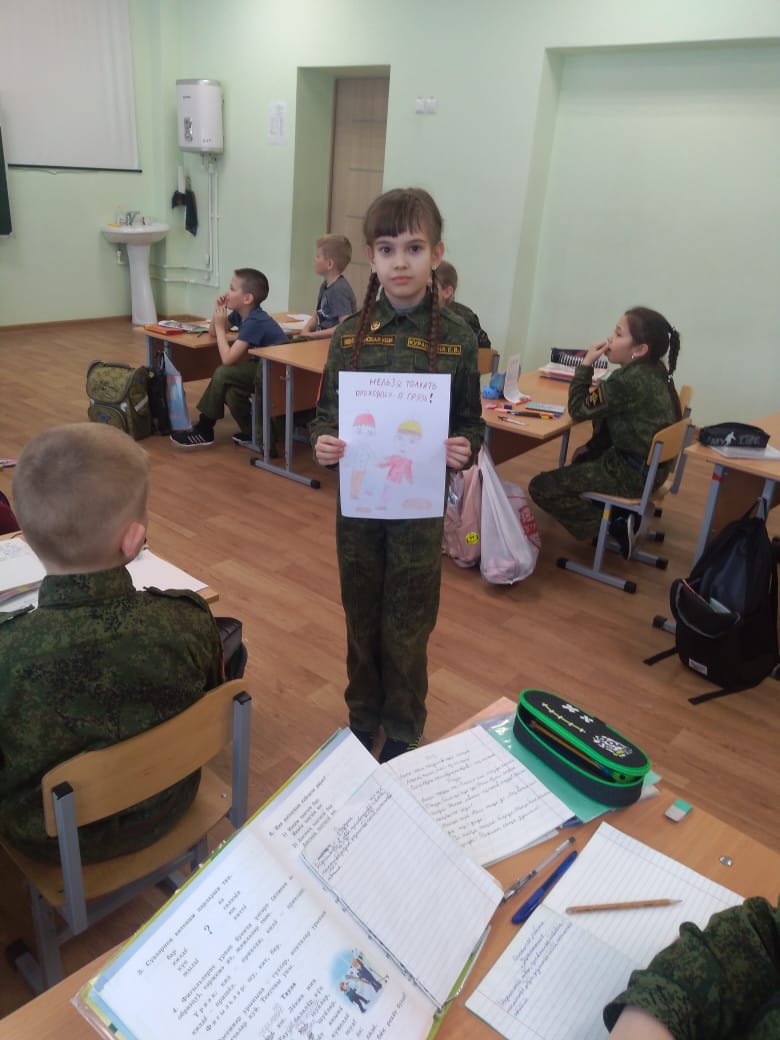 Опубликовано: 31.03.2021В первый день после каникул в 4 классе повторили правила весенней безопасности. Нарисовали рисунки и напомнили правила в 3 классе.