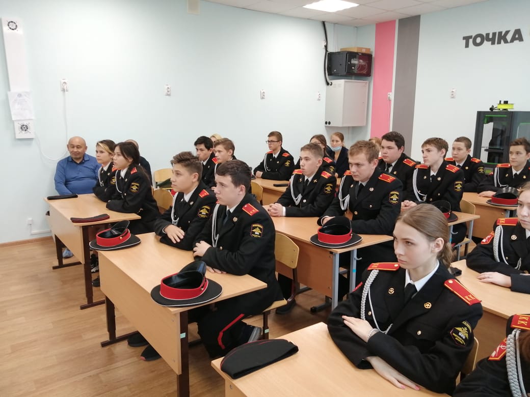 28 октябрь көнне безнең мәктәптә 7-11 сыйныф укучылары арасында Батырлык дәресе үткәрелде. Дәрестә икътисад фәннәре докторы, профессор, «Генерирующая компания» ААҖ генераль директоры урынбасары Анатолий Васильевич Краснов, район башлыгы вазыйфаларын башкаручы Наил Камил улы Хисамбеев, Минзәлә шәһәре Башкарма комитеты вазыйфаларын башкаручы Рамил Рәшит улы Шәйсуваров һәм Минзәлә районы хәрби комиссары Сергей Анатольевич Владимиров катнаштылар. Дәрес барышында кадетлар Минзәләнең кыскача тарихы белән таныштылар. Безнең район солдатларының батырлыклары турында сөйләнелде, Бөек Ватан сугышында катнашканнарның исемнәрен мәңгеләштерү кирәклеге турындагы мәсьәлә куелды. Дәрес ахырында безнең мәктәпкә Шпагинның пистолет-пулеметы һәм бик күп китаплар һәм басмалар бүләк ителде. Әңгәмә ахырында кунаклар интернат һәм мәктәп музеенда булдылар.