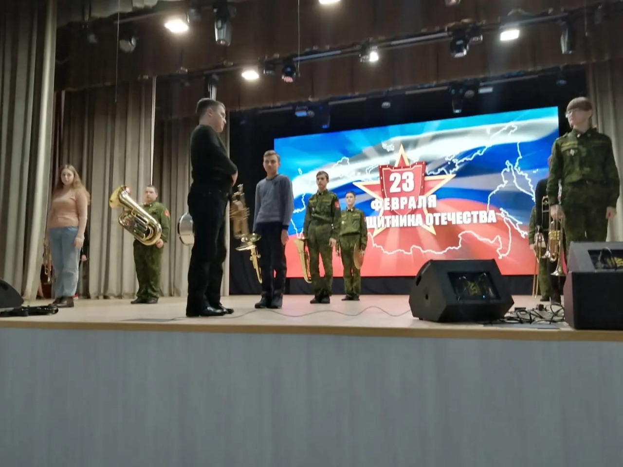 Минзәлә кадет мәктәбе коллективы 23 февральгә концерт өчен бәйрәм номерларын әзерли. Аларга яхшы чыгыш ясауларын телибез. Кадрлар репетициядэн.
