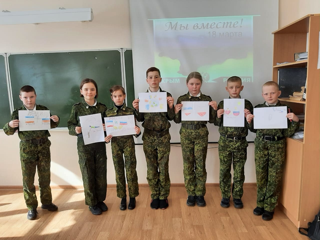 посвящённые 8 летию присоединения Крыма к России. Кадеты просмотрели тематические ролики,узнали о роли России в истории Крыма,приняли участие в викторине и конкурсе рисунков "Крымская весна глазами детей"