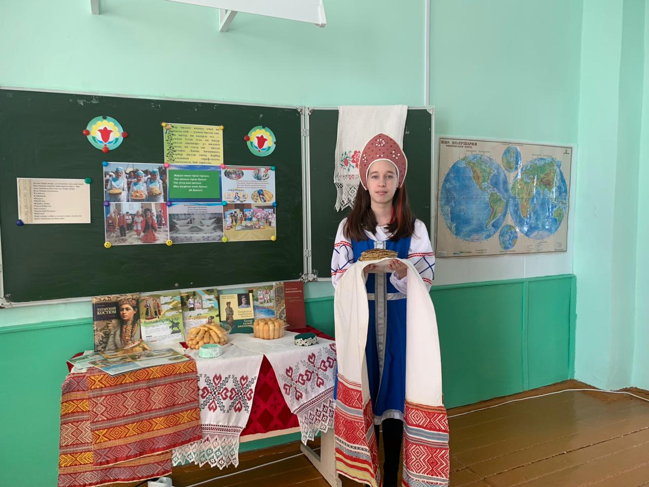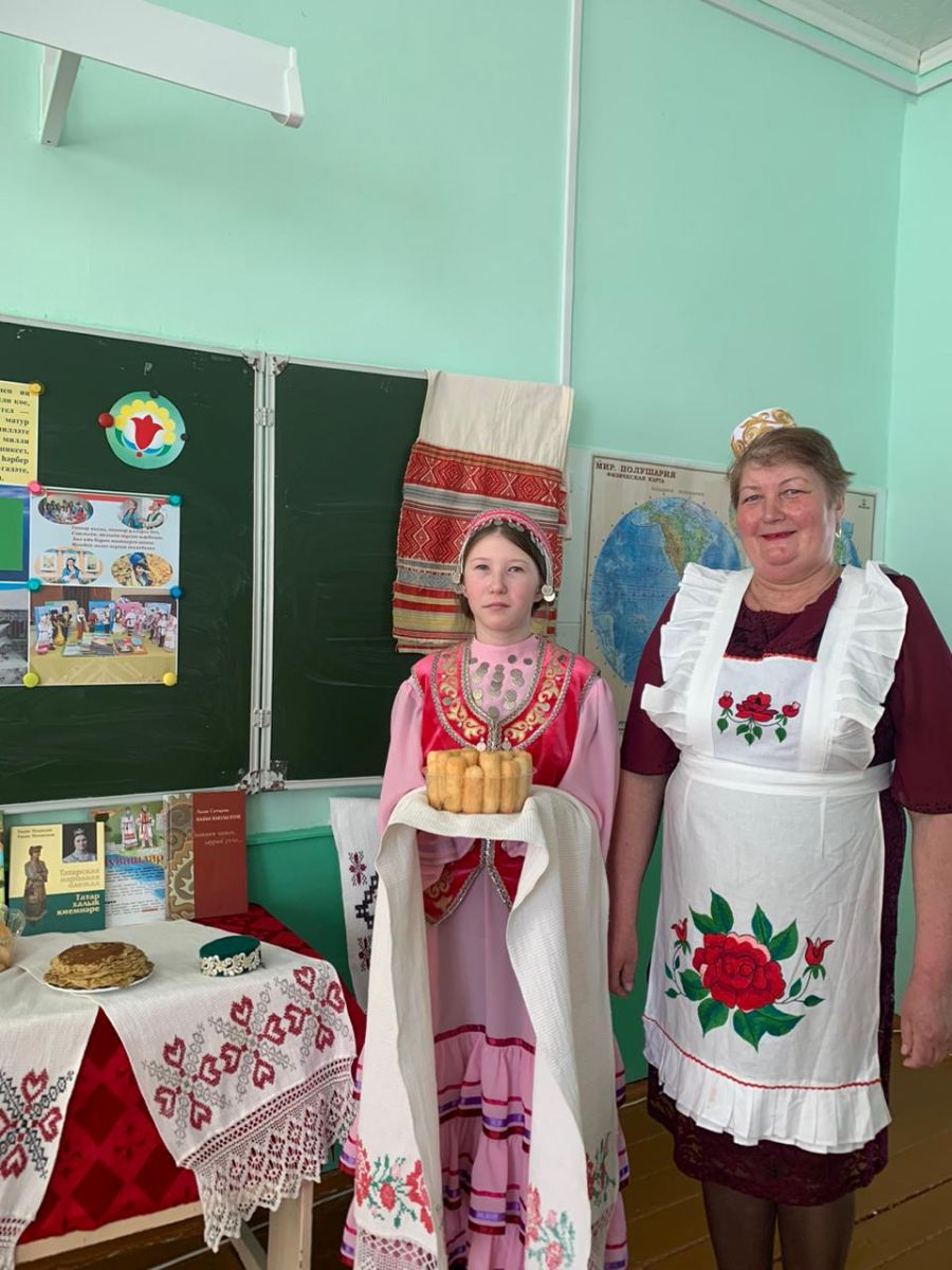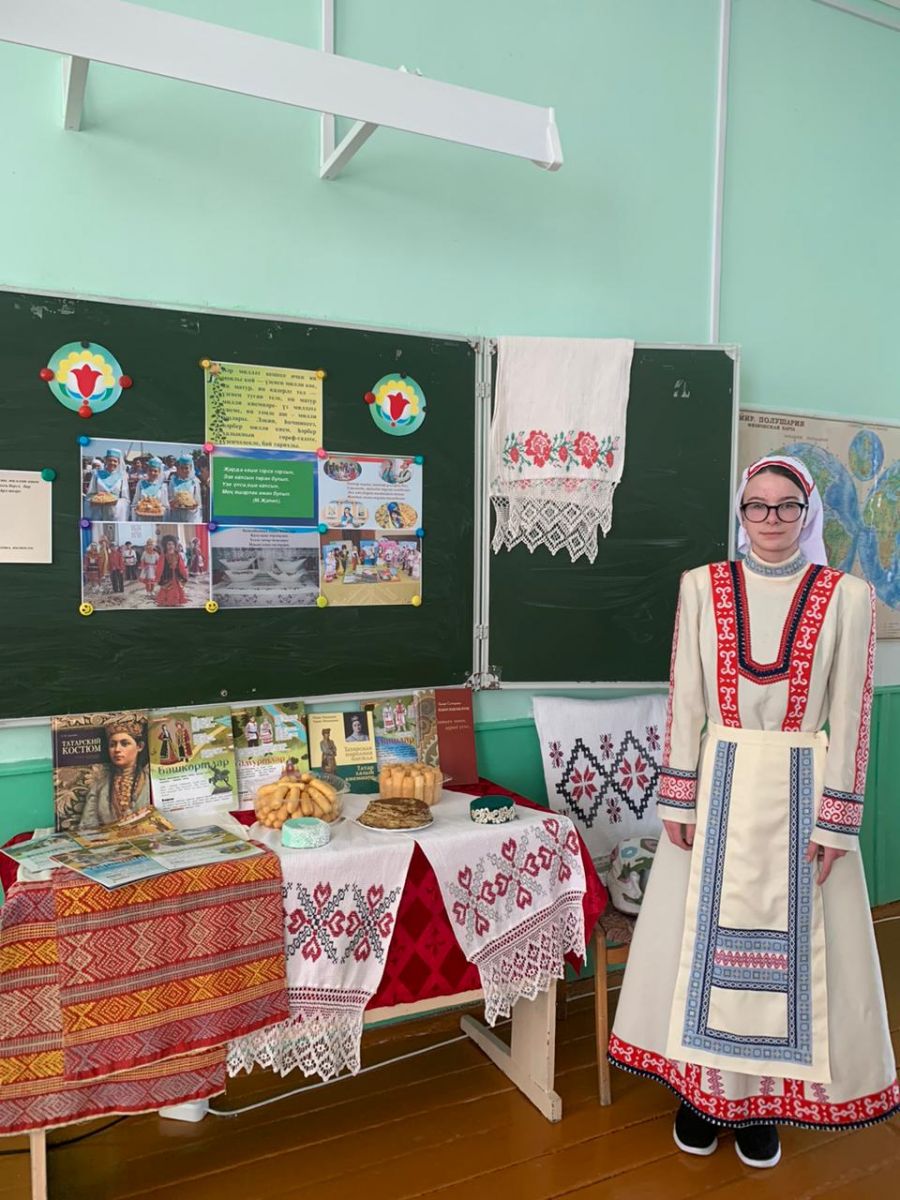 Мәктәптә Пушкин картасы буенча Кадрәк мәдәният йорты директоры Ф.Сафиуллина “Һәр халыкның үз бизәге” дигән әңгәмә-сәяхәт уздырды. Чара барышында укучылар үзебезнең түбәктә яшәүче татар, рус, керәшен татарлары, чуваш, мари милләтләренең киемнәре, гореф-гадәтләре, йолалары, милли ризыклары белән таныштылар.