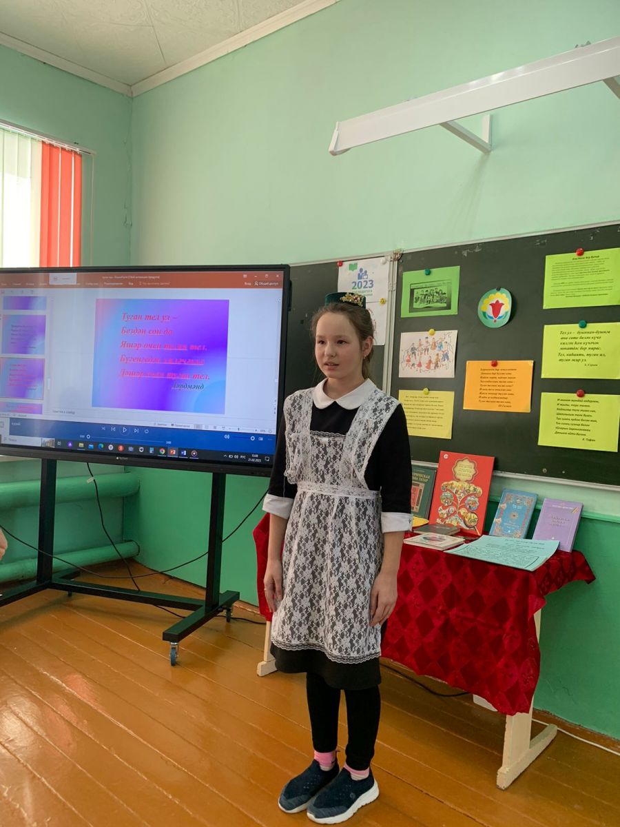 Туган тел. Һәркем өчен дә газиз сүз бу. Чөнки иң кадерле, бернәрсә белән дә алыштырылмый торган “әни”, “әти”,”әби”, “бабай” сүзләрен башлап туган телдә әйтәбез. Туган үскән ил-җирнең якынлыгын, Ватанның газизлеген без туган тел ярдәмендә тойганбыз. Шагыйрьләребезнең матур-матур шигырьләрен ятлап, әле дә куанабыз, рухланабыз. Халыкара туган телләр көне уңаеннан мәктәптә “Минем телем – минем халкым” дип исемләнгән шигырь укучылар бәйгесе уздырылды.