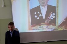 "Көзге игелек атналыгы" акциясе кысаларында башлангыч сыйныфларда "Хәтер дәресе" үткәрелде. 4 нче сыйныф укучысы Валиев Самат бабасы М.В.Валиевның сугыш юлы турында сөйләде.