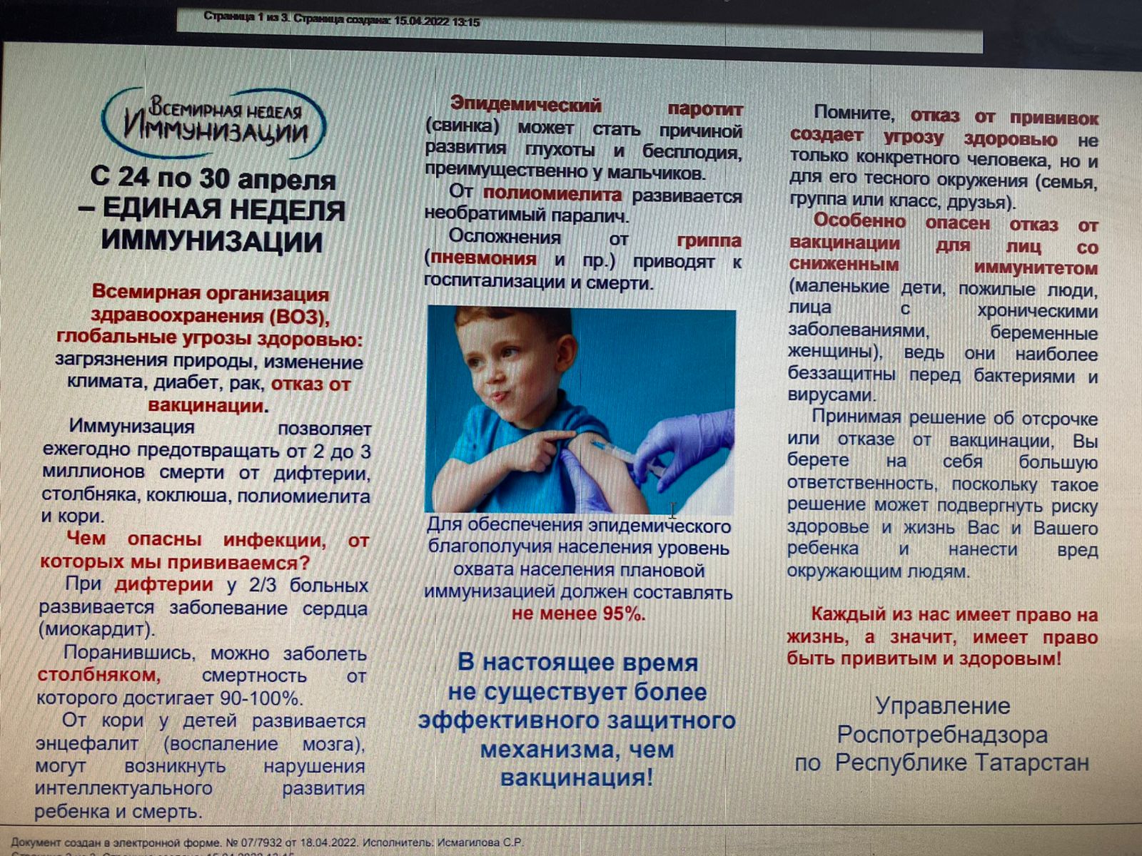 ЕДИНАЯ НЕДЕЛЯ ИММУНИЗАЦИИ с 24 апреля по 30 апреля 2022