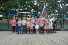 Мероприятие прошло на стадионе Калтаковской СОШ совместно с летним оздоровительным лагерем «Исток». Мероприятие организовали работники дома культуры в форме спортивных игр. Также дети вспомнили, что обозначают символики России, исполнили гимн РФ.