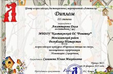 Воспитанница нашего сада Апсаттарова Диля стала обладательницей диплома 3 степени Всероссийского конкурса "Пировали птицы на снегу" в номинации "Скворечник"