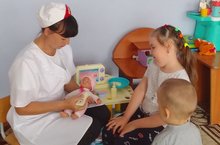 Во Всемирный день медицинского работника ребята, в ходе беседы закрепили свои знания о медицинской сфере деятельности. Провели мединскую викторину, сделали тематическую аппликицию, которую подарят местному фельшеру, а так же играли в сюжетно -ролевую игру "на приеме у врача".