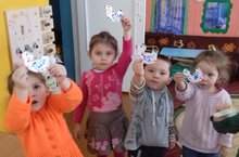 Воспитанники младшей группы продолжают знакомство с дымковской игрушкой, сегодня они с воспитателем Волковой Л.А. с удовольствием разукрасили своих "Уточек-марфуточек".