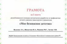 Поздравляем воспитателей ДОУ с победой в республиканском конкурсе методических разработок по профилактике детского дорожно-транспортного травматизма "Мое безопасное детство". Желаем дальнейших успехов!