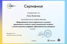 Заведующий Ахметова А.Н. приняла участие в работее вебинара "Формирование основ патриотизма и духовно-нравственных качеств у детей дошкольного возрвста с использоанием цифровых образовательных ресурсов".