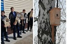 Балалар кошларны сыерчык оялары белән каршы алдылар.