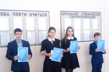 На общешкольной линейке, посвященной дню родного языка вручались грамоты ученикам, участвовавшим в конкурсе "Русский медвежонок".