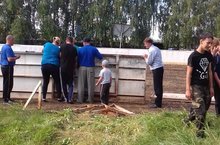 Силами учащихся и родителей на спортивной площадке была собрана хоккейная площадка.