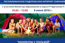 8.06.2018 с 10.30 до 12.00 пройдет республиканское родительское интернет-собрание "Каникулы с пользой"
