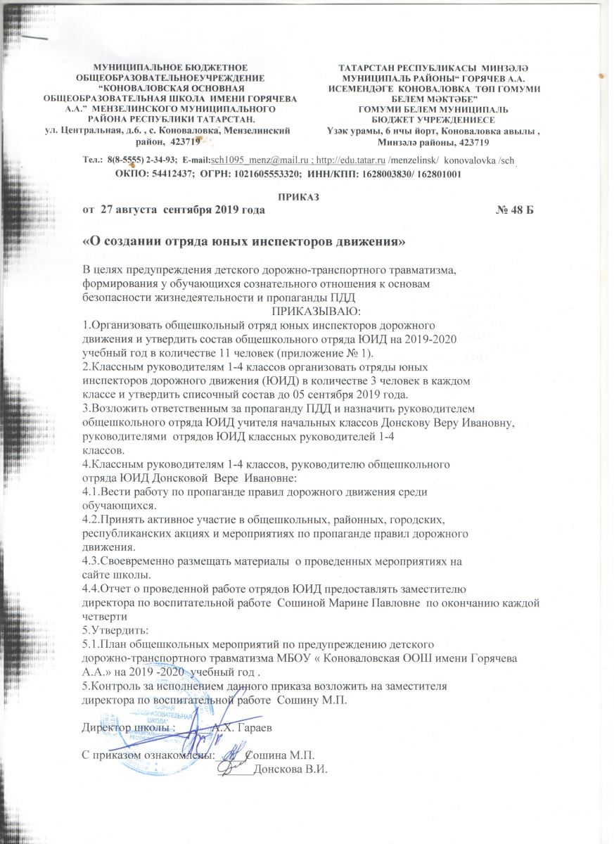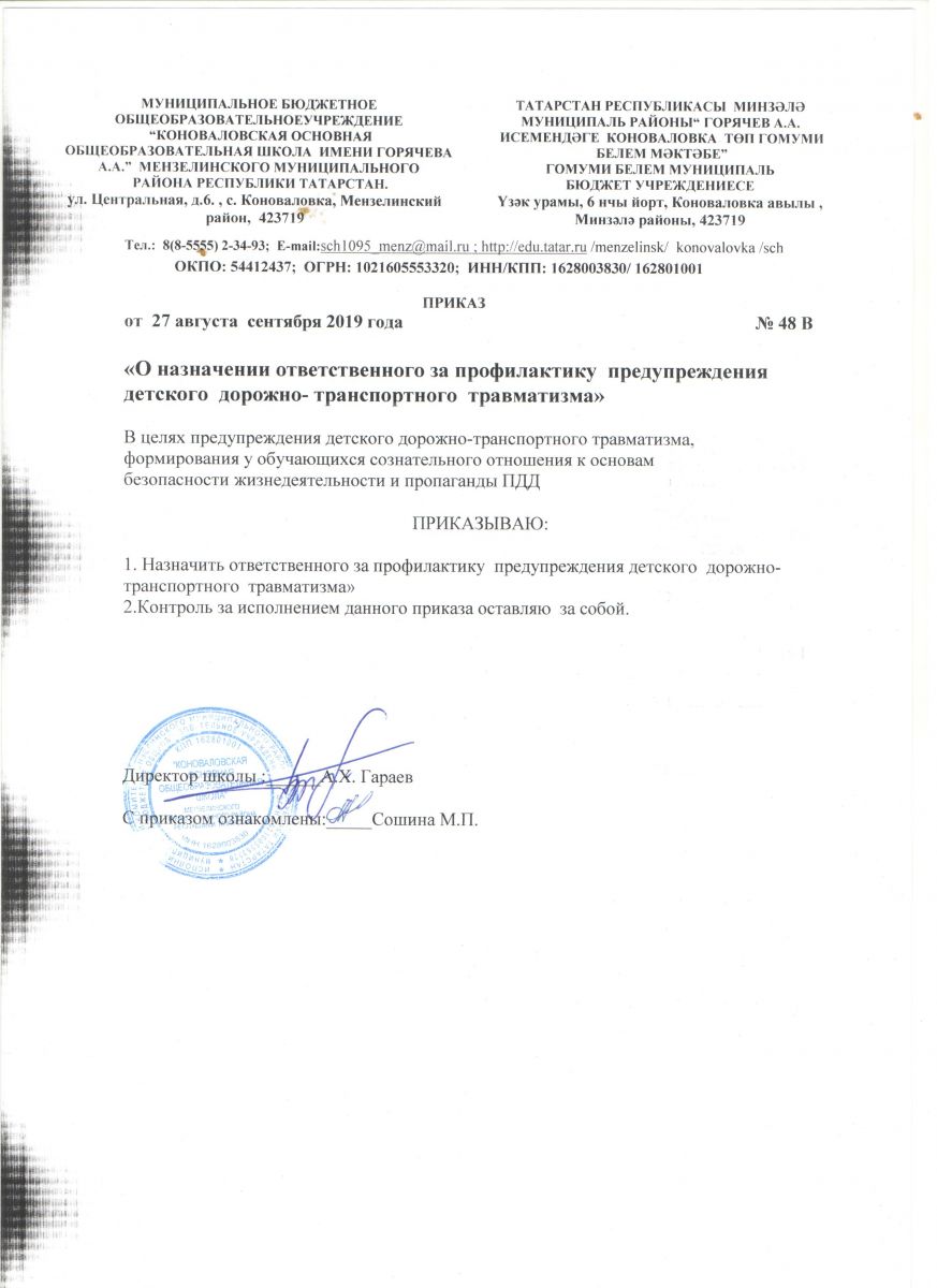 Приказ "О назначении ответственного за профилактику предупреждения ДТТ"