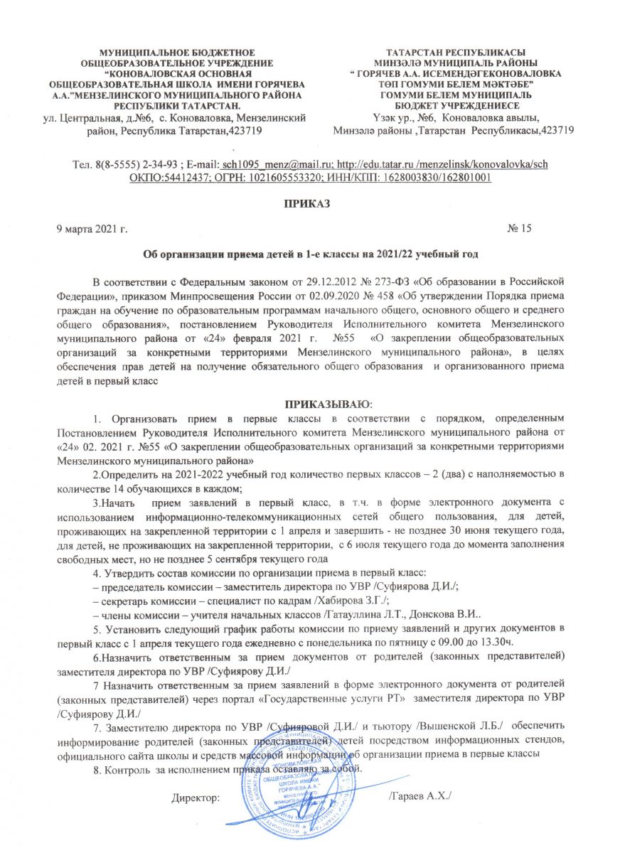 Приказ об организации приема детей в 1 классы на 2022-2023 уч.год