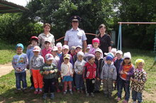 В рамках организации республиканских профилактических мероприятий по ПДД "Внимание, дети!" по предупреждению детского дорожного травматизма в летний период, в ДОУ было проведено спортивное развлечение "Веселые старты". Дети соревновались в ловкости, быстроте, смекалке. Приглашенный гость - инспектор ГИБДД ОМВД по Мензелинскому району РТ Мухаметдинов Азат Гарифзянович, провел с детьми разъяснительную беседу о правилах поведения на дороге.