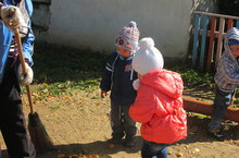 Воспитатели Шакирова Лилия Р. и Зарипова Алина А. на прогулке с детьми старшей и младшей группы.