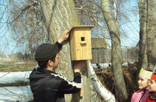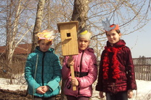 Ученики 4 класса сделали сковоречники для птиц . И после классного часа, посвященного Дню птиц, установили их в школьном саду.