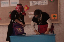 Сегодня в начальных классах было проведен праздник Осени. Ребята в костюмированных костюмах отгадывали загадки, читали стихи, показывали сценки.