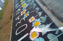 для всех жителей деревни нарисовали на асфальте перед школой ученики начальных классов.