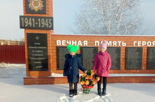 Ученики 7-9 классов в торжественной обстановке возложили гирлянду с цветами, которую сделали сами,к памятнику павшим односельчанам.