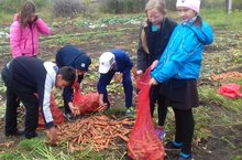 Учащиеся 5,7 класса принимали участие в уборке моркови на пришкольном участке.