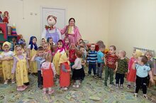 Безнең бакчада "Театр һәм балалар атналыгы" конкурсы дәвам итә. Бүген зурлар төркеме балалары ата - аналар ярдәмендә ясалган курчаклар белән "Йомры икмәк" курчак театрын тәкъдим иттеләр.