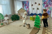 В рамках театральной недели дети средней группы детского сада № 2 "Алтынчеч" показали детям сказку "Теремок".Малышам очень понравилось представление.