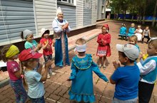 В рамках Года родных языков и народного единства, в детском саду №2 "Алтынчеч" 28 июля прошел "День дружбы". Дети познакомили с национальными костюмами разных национальностей, играли в игры разных национальностей.