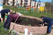 Беркетелгән участокларны яшелләндерү буенча эш дәвам итә. 2 нче "Алтынчәч» балалар бакчасы хезмәткәрләре шәһәр чәчәкләрен бизәүгә үз өлешләрен керттеләр.