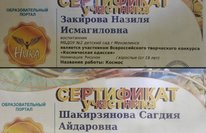 2 “Алтынчәч” балалар бакчасында тәрбияләнүчеләр һәм тәрбияләнүчеләр “Космик одиссея ” Бөтенроссия иҗат конкурсында “Космос” рәсеме номинациясендә, Закирова сертификаты Нәзилә Исмәгыйль кызы, “Космик космоска очыш” бүләге номинациясендә катнашучы Сертификат Шакирҗанова Сагдия актив катнашты.