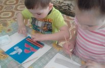 В МБДОУ "Детский сад 2 "Алтынчеч" в дежурной группе дети совместно с вопитателем просматривали альбомы посвященных ВОВ и изготовили открытки для своих дедушек.