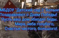 МБДОУ "Детский сад 2 "Алтынчеч" Идут года, но славный подвиг Нам никогда не позабыть. Вас поздравляем с Днем Победы, Желаем только в мире жить! Видео фильм можете просмотреть по этой ссылке https://vk.com/wall-194765825_122