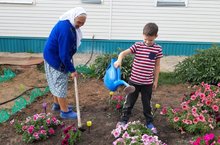 Дети подготовительной группы изготовили подарки своими руками для своих бабуше, дедушек (пробабушек, продедушек) и оказали им свою помощь в труде.