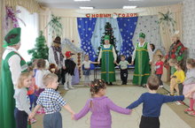 К малышам из 1 младшей группы «Умырзая» пришел снеговик, снеговик весь утренник играл с ними в различные игры и шутки, пел песенки и танцевал танцы. А потом дети позвали Снегурочку она пришла добрая и веселая. Она шутила и создавала волшебные ситуации (Зажигала елку, танцевала со снежинками танец и т.д.). Ну и конечно к детям Дедушка Мороз пришел. Он был добрым и веселым. Он пел с детьми песни, танцевал и играл в игры.