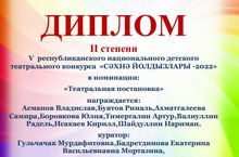 В V республиканском национальном детском театральном фестиваль -конкурсе "Сэхнэ йолдызлары-2022" заняли 2 место в номинации "Театральная постановка". Кураторы: Бадретдинова Е.В.,Мортазина Г.М.